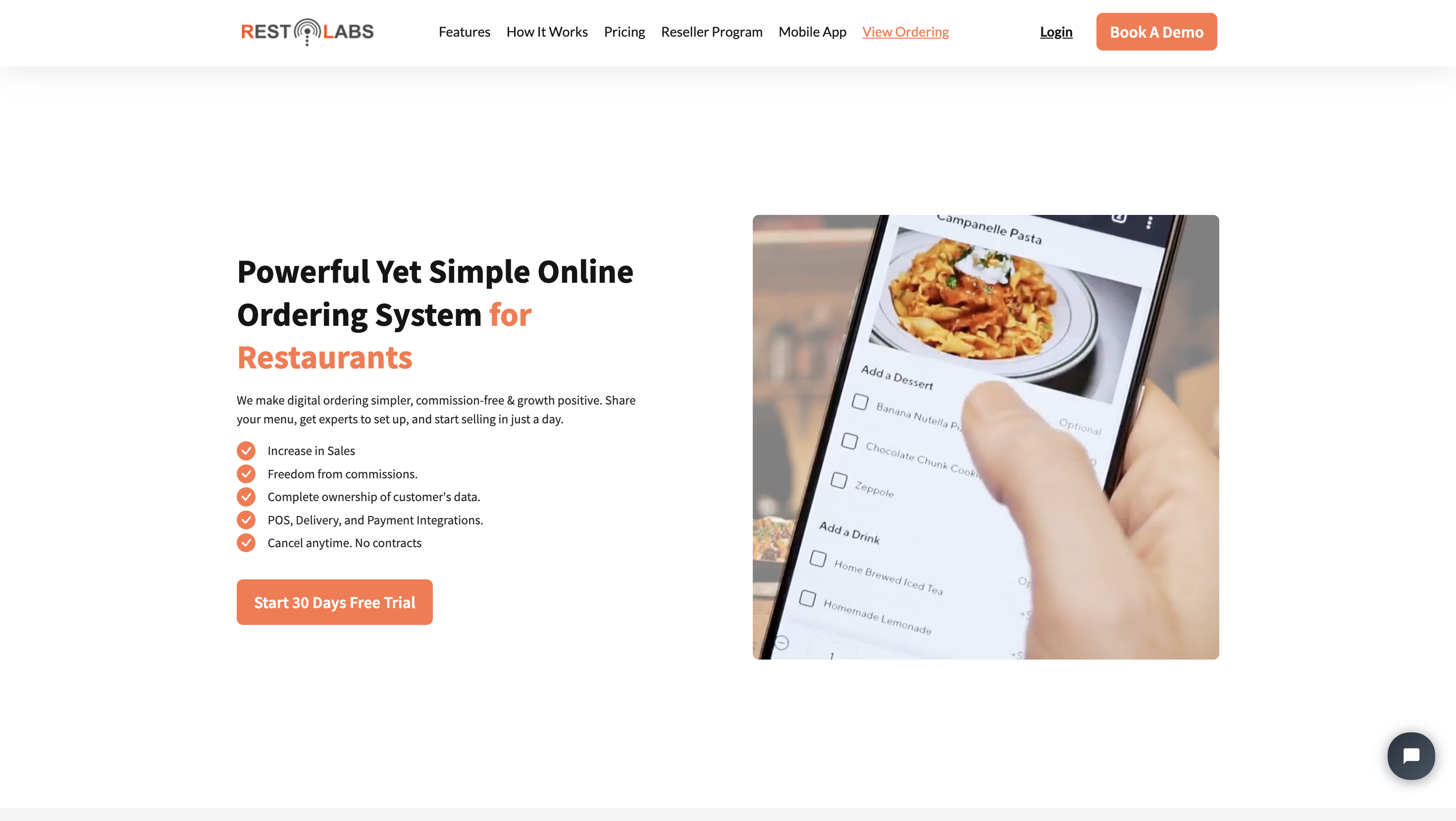 Restolabs is a commission-free digital ordering system that stands out for its extensive customization options, 24/7 tech support, and insightful analytics and reporting. While not perpetually "free," its 30-day free trial provides access to the complete suite of features without limitations, offering a true taste of a powerful online ordering system for restaurants.