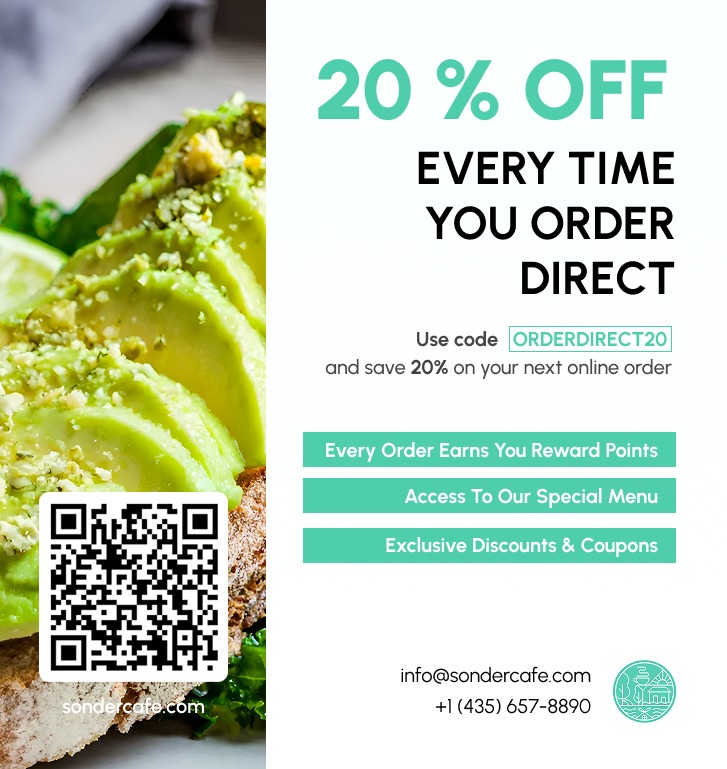 Every order leaving your kitchen through a third-party platform is a conversion opportunity youβre not using. Add a simple insert to each delivery with a QR code linked to your ordering page, your website URL, and a clear incentive for next time.