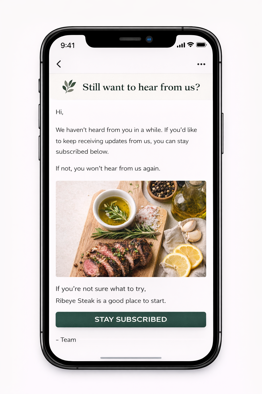 To reel them back in, trigger a win-back email based on your typical ordering frequency β for example, a casual lunch spot might use 45 days; a higher-end dinner destination might use 90. The tone of your email should be light and genuinely inviting, not guilt-tripping.