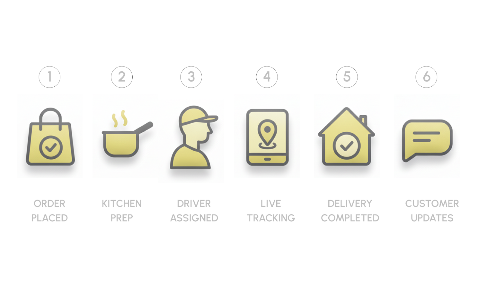 Once the driver has picked up the order and is en route, the system monitors the delivery in real-time. The customer receives automatic status notifications, such as confirmation, out for delivery, arriving soon, and delivered, via SMS or email.