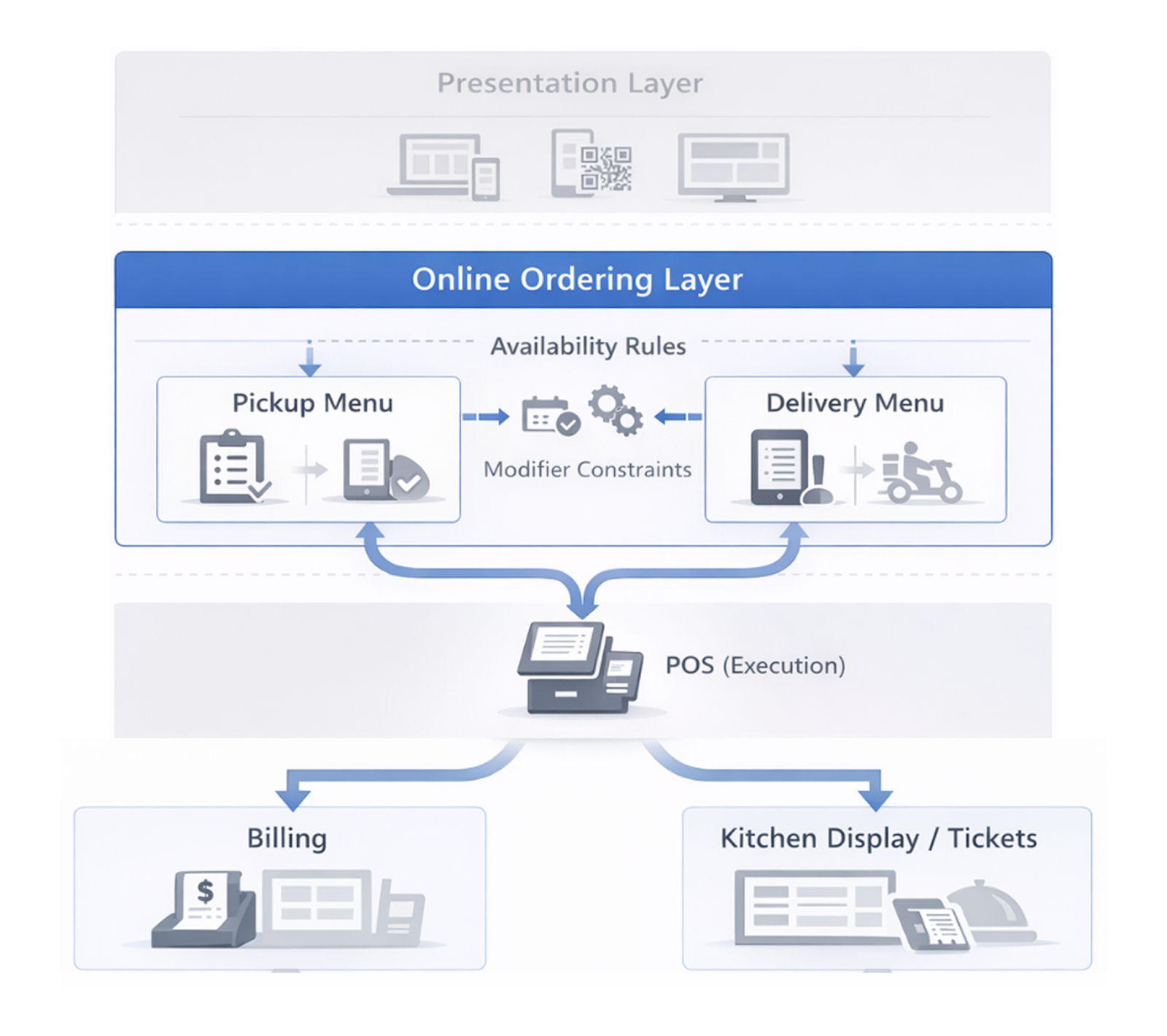 - Faster updates with less coordination overhead: Menu changes are applied through a single update process instead of parallel edits across POS, online ordering, and delivery tools.
