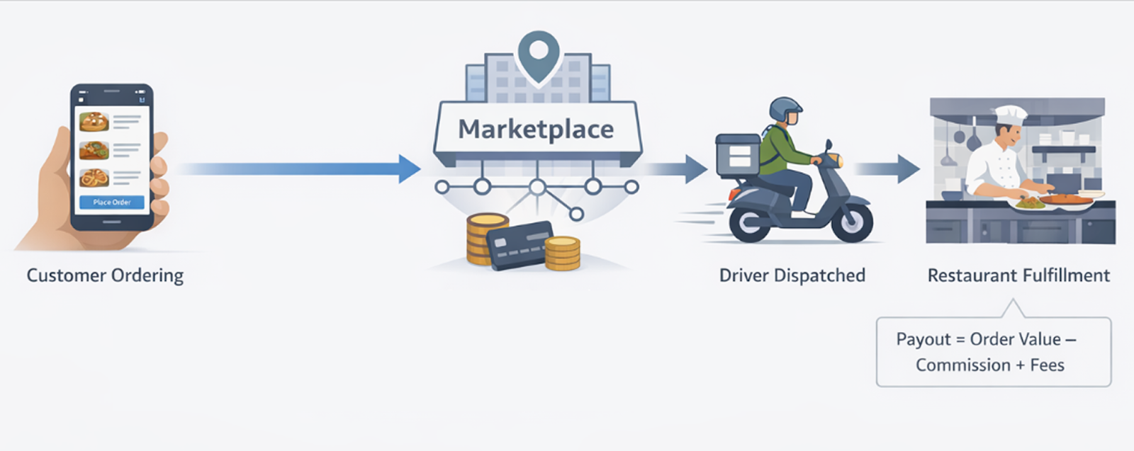- Each order carries a commission, often 20–30% as you’ve seen in Uber Eats